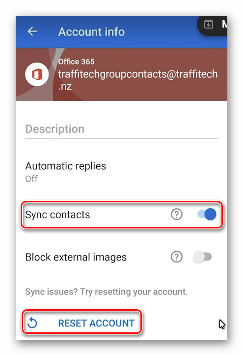 Now ensure that the Sync Contacts option is enabled (blue) then click on the 'Reset Account' option as this helps retain this setting.